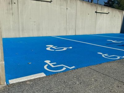 Réalisation de places de stationnement pour personne à mobilité réduite.